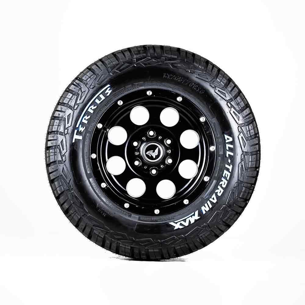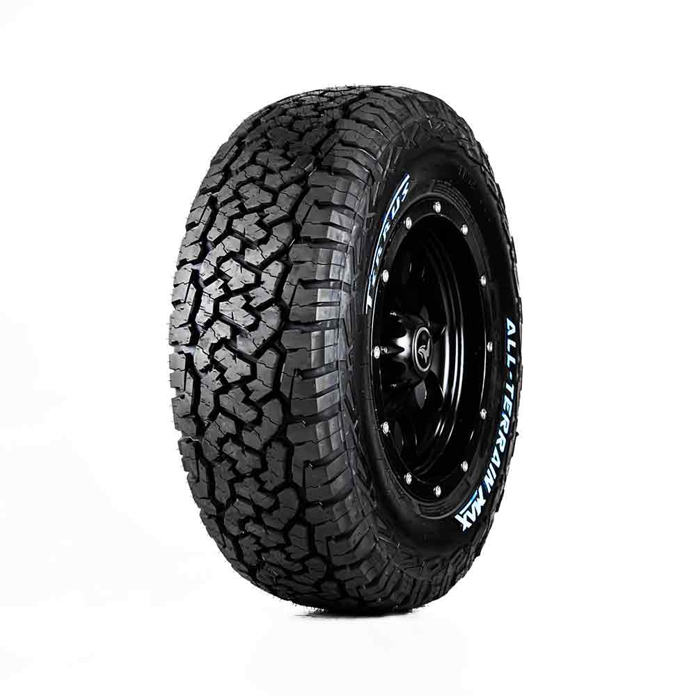 La Llanta TERRUS ALL-TERRAIN tipo A/T o Todo Terreno para Pick-ups y SUVs con un diseño asimétrico que provee excelente estabilidad de rodadura y manejo preciso en suelos húmedos, los surcos y ranuras laterales reducen eficientemente el ruido al estar en movimiento, fabricada con un nuevo compuesto de silica en la banda de rodadura reduciendo la resistencia de rodamiento mejorando desempeño su de agarre